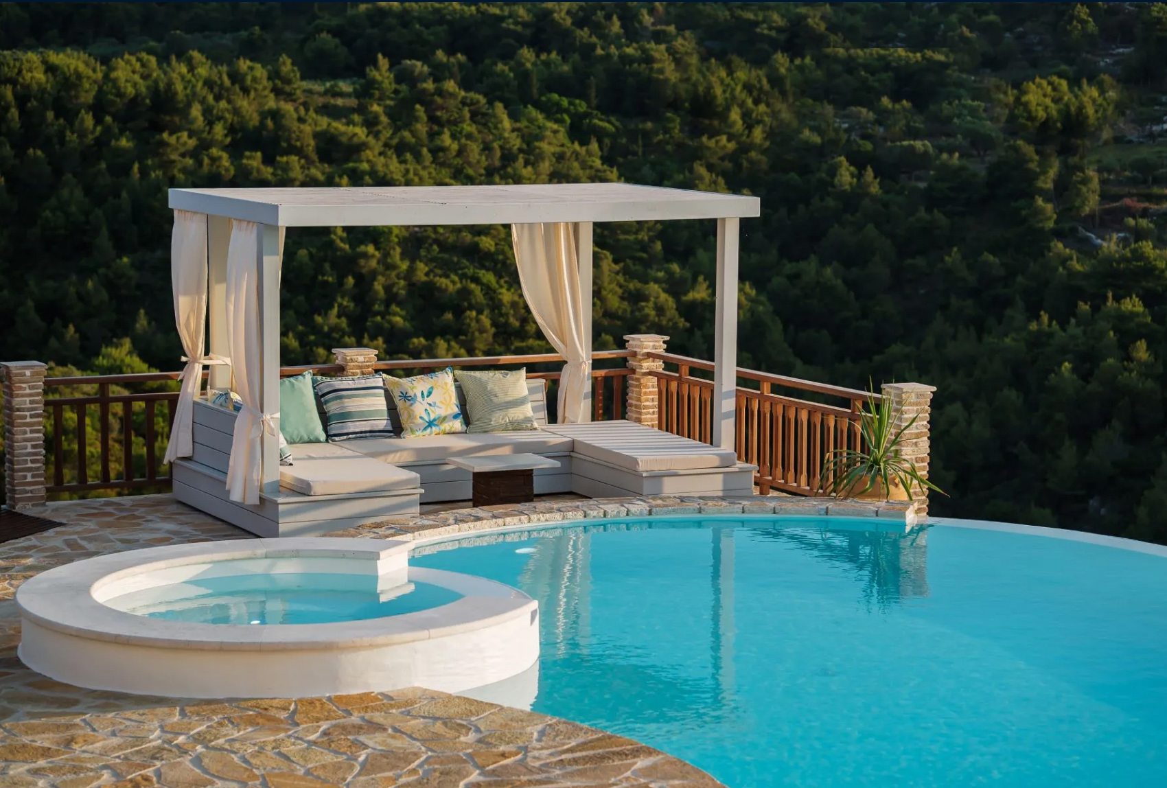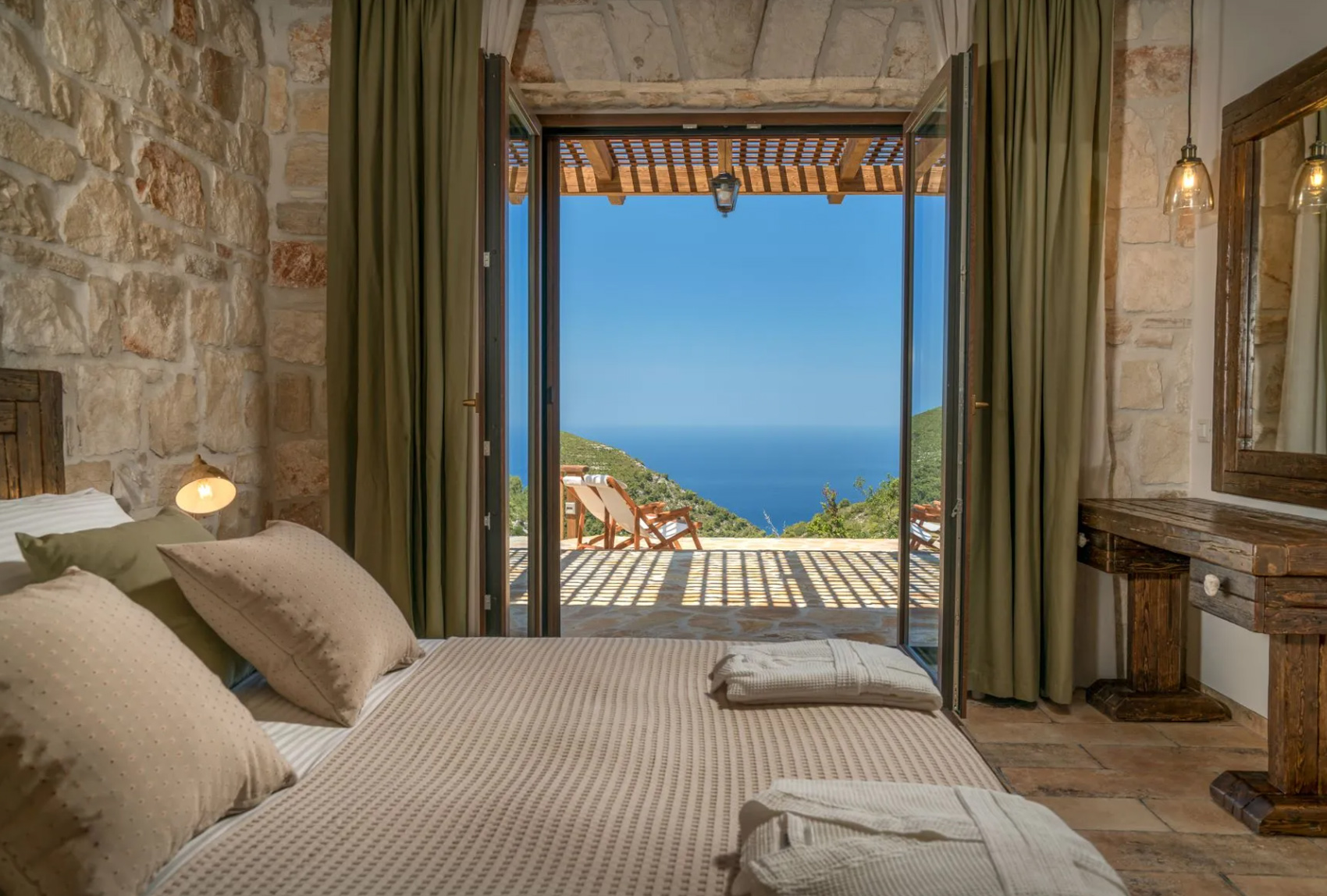 Premium floorings made of oak and Italian tiles are combined with natural materials and fabrics, creating a relaxed atmosphere where quality meets comfort. The villa accommodates up to 15 guests across its 7 elegantly appointed bedrooms.